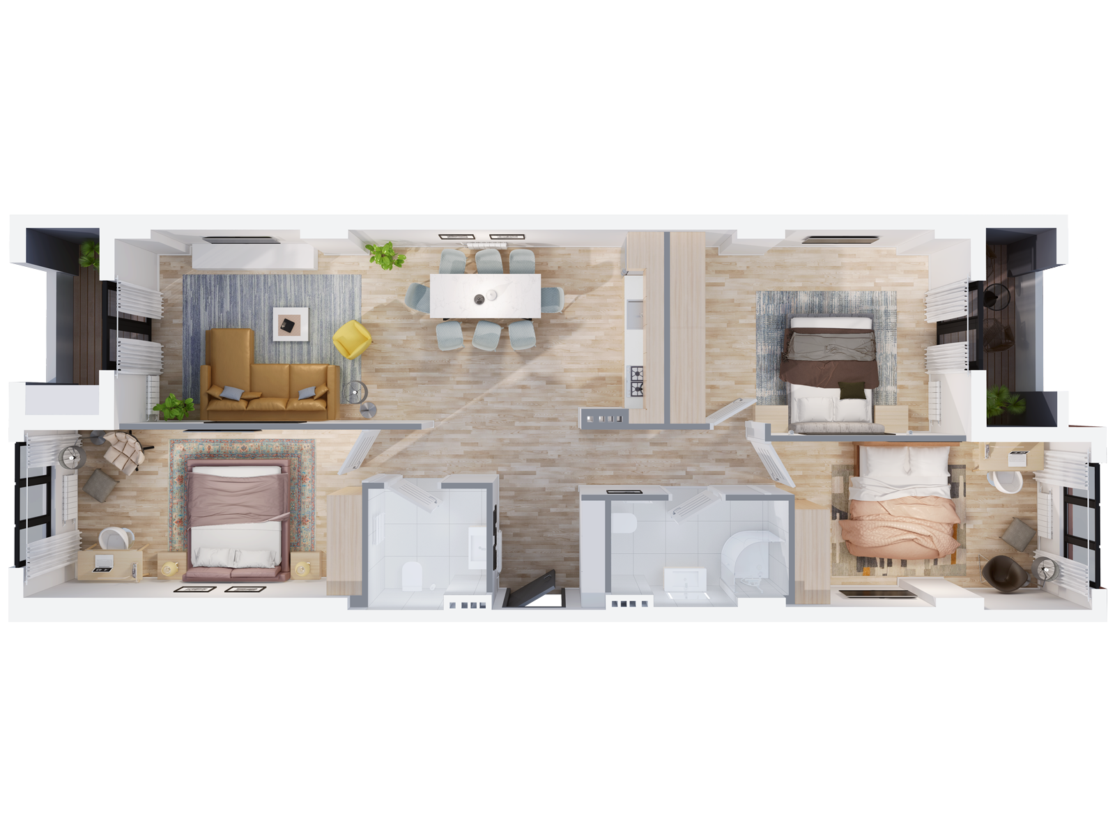 * ბინის რენდერებზე წარმოდგენილი გეგმარება (მასალა) არის საილუსტრაციო