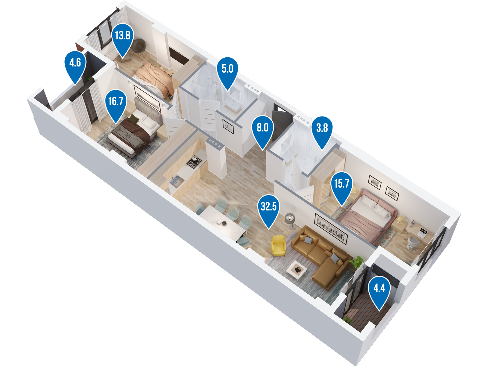 Living room:32.5 m2