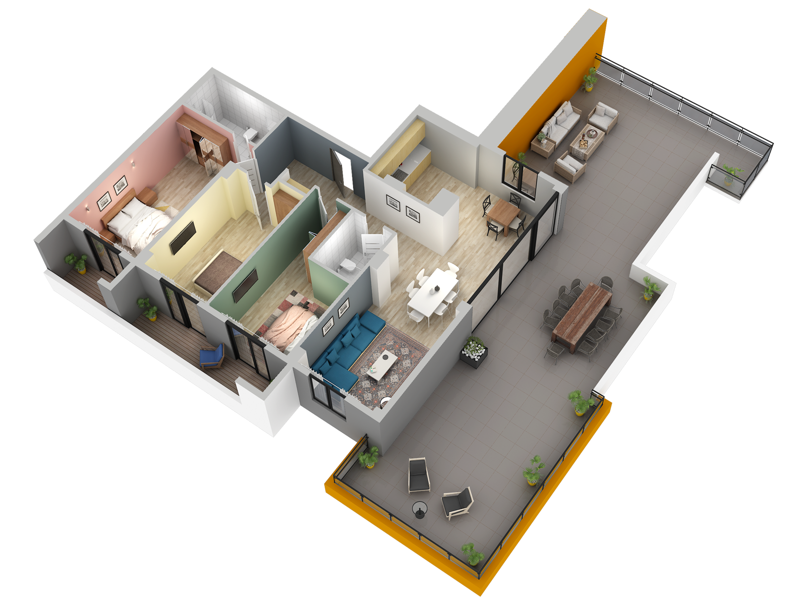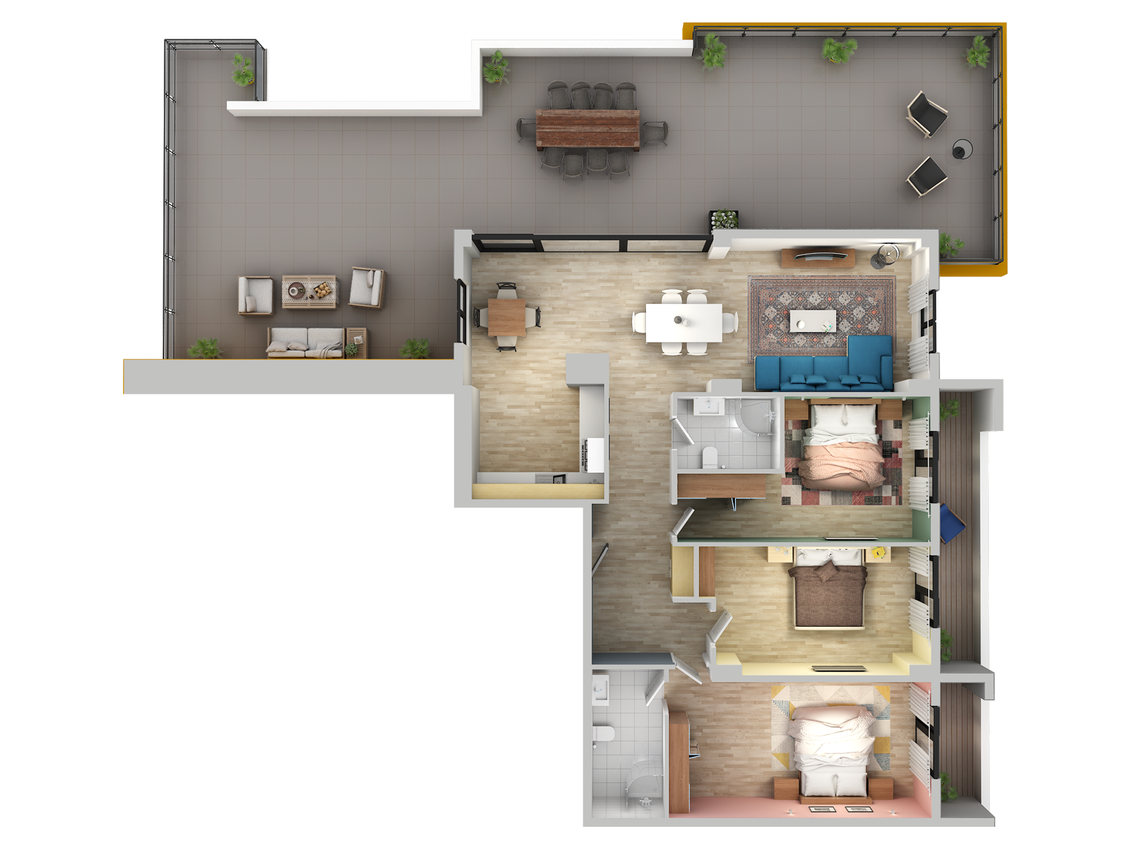 • * ბინის რენდერებზე წარმოდგენილი გეგმარება (მასალა) არის საილუსტრაციო